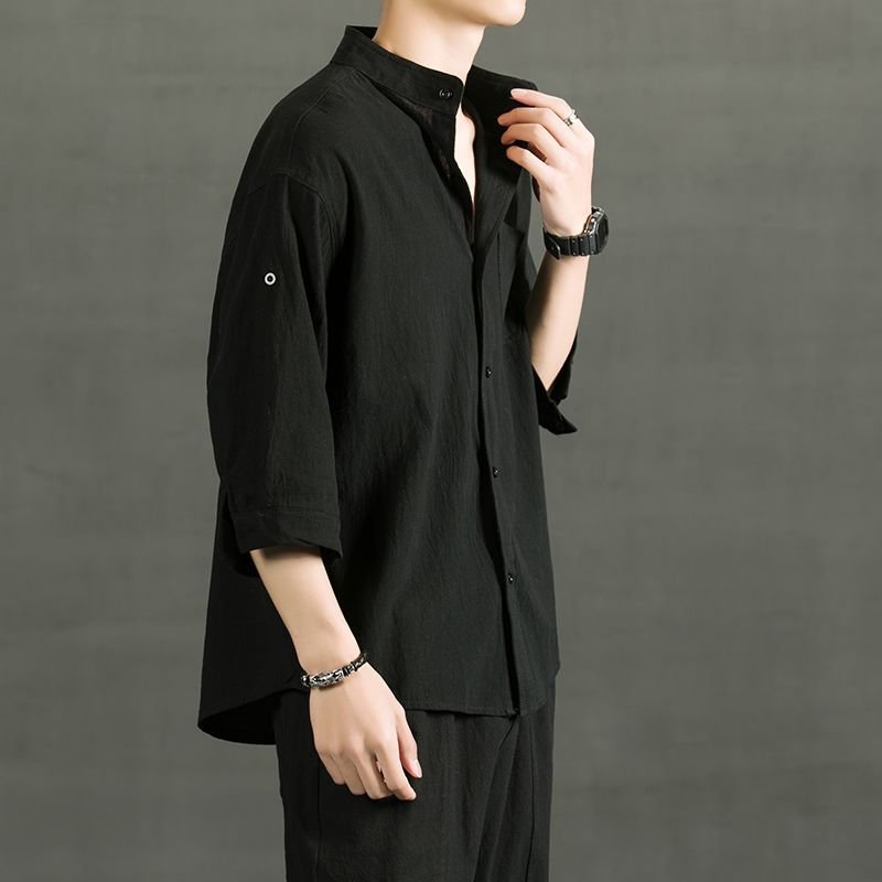 メンズ綿麻半袖シャツ